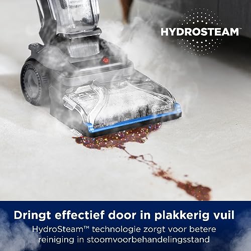 BISSELL | Revolution HydroSteam™ | Tapijtreiniger | Voor hardnekkig, plakkerig vuil en rommel | Met snoer | Voor tapijt, vloerkleden, bekleding, trappen | 77 dBa | Zwart, Titanium, Kobaltblauw | 3670N