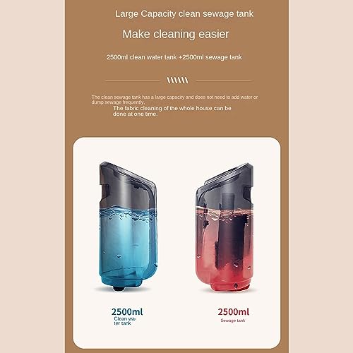 【Onafhankelijke watertank】De vlekreiniger heeft dubbele watertanks, die 2,5 liter schoon water en 2,5 liter vuil water kunnen scheiden. De vuilwatertank kan veel water bevatten en heeft een gemakkelijke opening voor eenvoudig verwijderen, legen en schoonmaken.