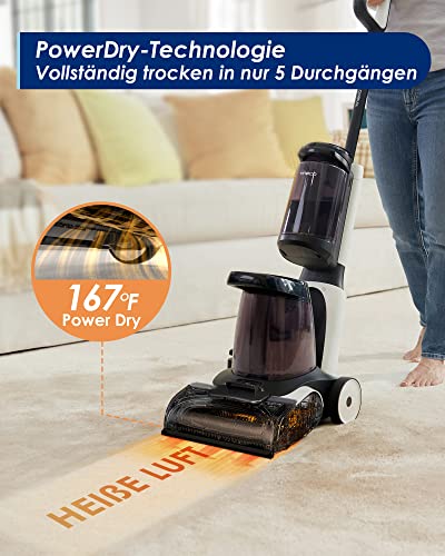 Krachtige zuigkracht zonder vuilwaterresten. Met een krachtig nominaal vermogen van 1300 W brengt de Tineco Carpet One 130 AW aan effectieve zuigkracht op om tapijten te reinigen en waterresten te verwijderen. Bovendien verwijderen de borstelharen eenvoudig diep ingebed vuil, vlekken en tapijtgeuren.