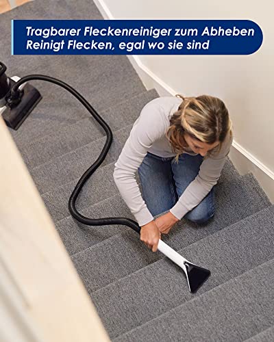Verdere reiniging met vlekreiniger: Tineco Carpet One reinigt meer dan alleen tapijten. Met een extra slang en een vlekverwijderingsgereedschap kun je kussens, trapjes, auto-interieur en andere moeilijk bereikbare plaatsen – zelfs hardnekkige vlekken – moeiteloos reinigen.